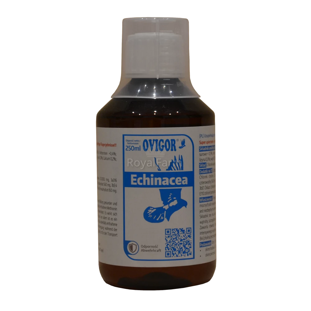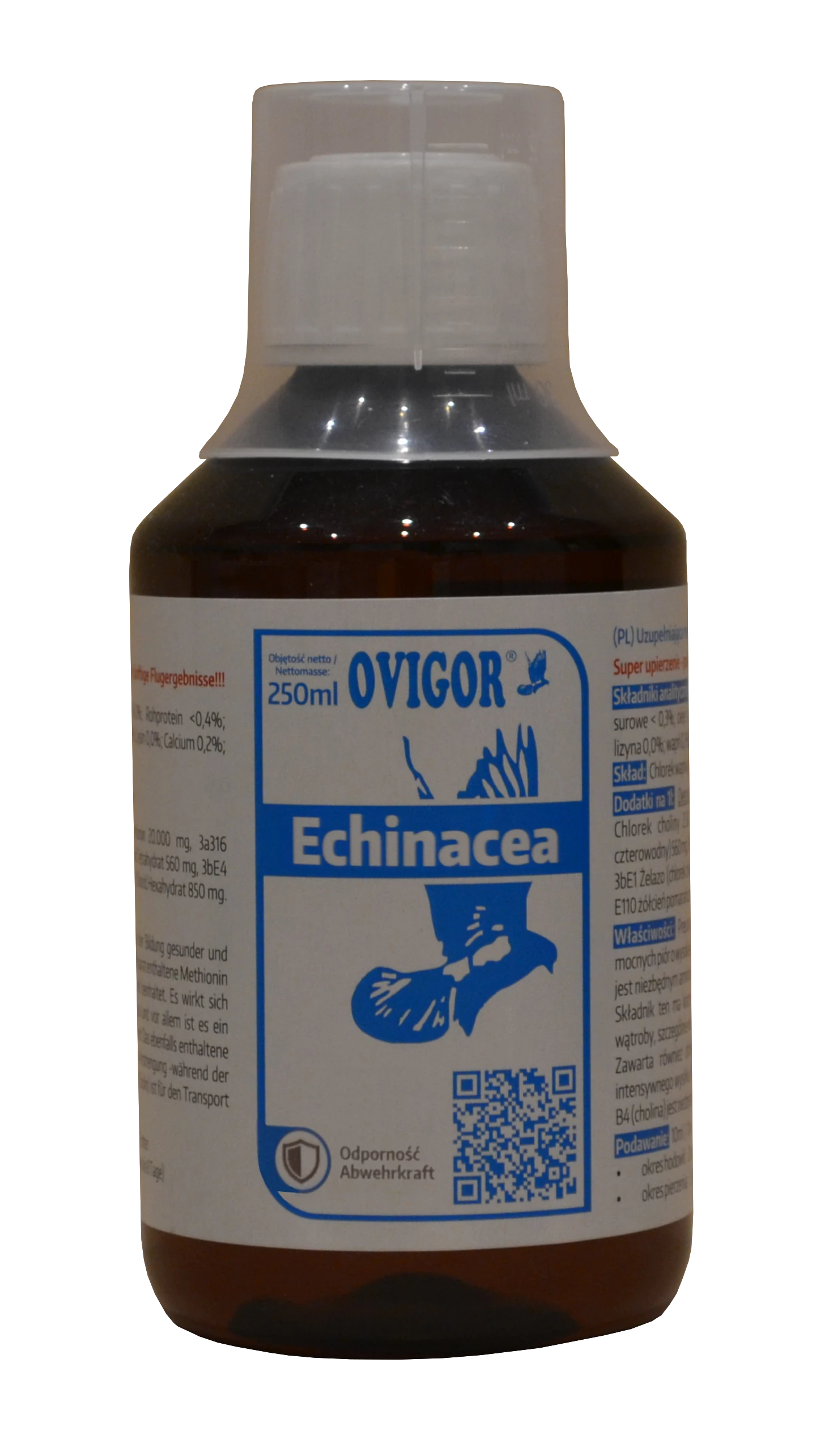Tulajdonságok: Az echinacea növényekből nyert természetes termék. Serkenti a galambok immunrendszerét, növeli a baktériumokkal és vírusokkal szembeni rezisztenciát. Antibiotikumterápia után alkalmazzák,legyengült (tenyész időszak) és stresszes helyzetekben (repülések, kiállítások, oltások).