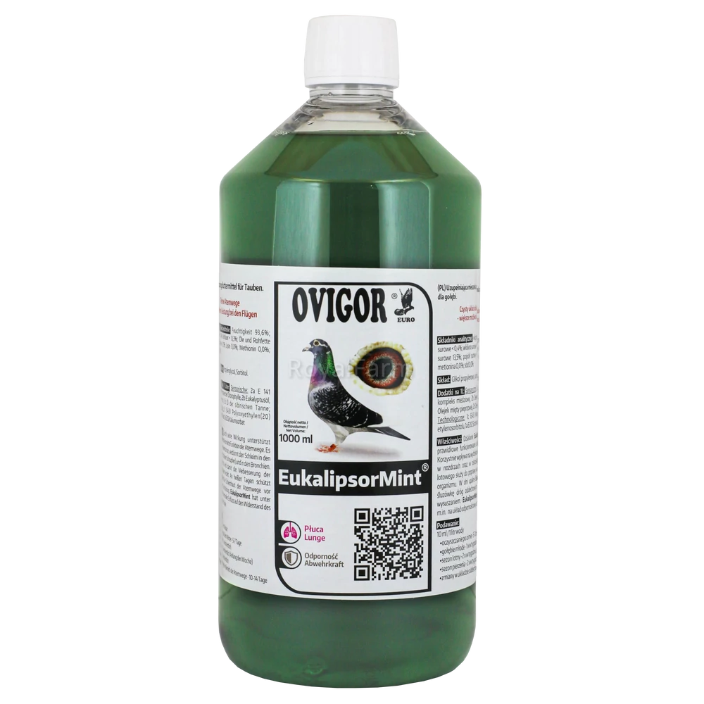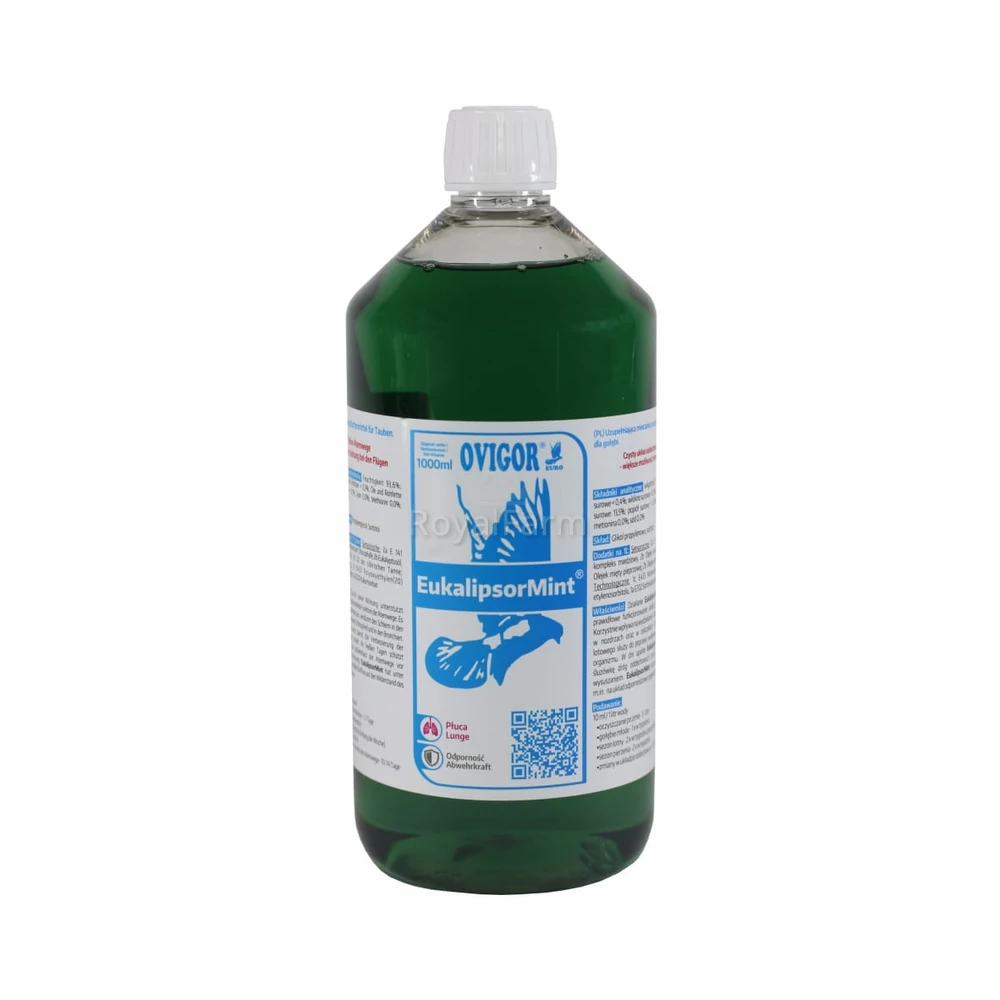 Az Eukalipsor Mint egy természetes alapú készítmény, amely hatékonyan támogatja a galambok felső légúti egészségét. A tiszta és egészséges légutak kulcsfontosságúak a jobb repülési teljesítményhez és az optimális oxigénellátáshoz.