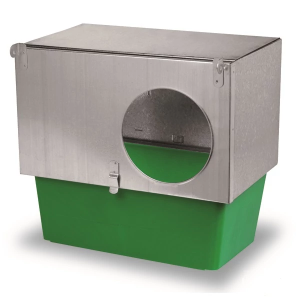 Fém fialtató odú műanyag mély-süllyesztett elletőládával + perforált műanyag betéttel.