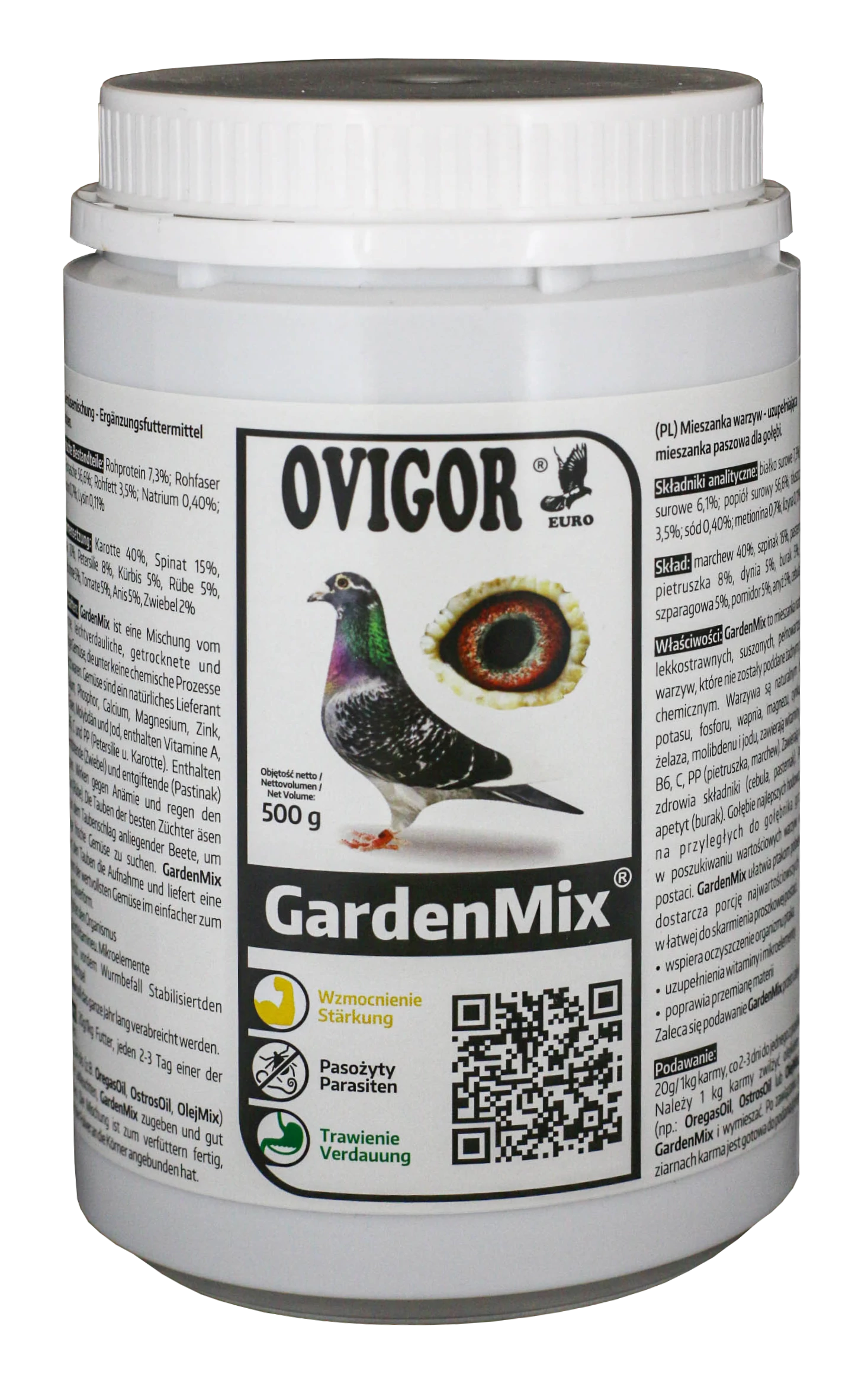 A legjobb tenyészetek galambjai ösztönösen keresik a friss zöldségeket a dúc környezetében. A GardenMix ezt a természetes táplálkozást teszi elérhetővé könnyen adagolható, porított formában, biztosítva a legértékesebb zöldségek rendszeres bevitelét.