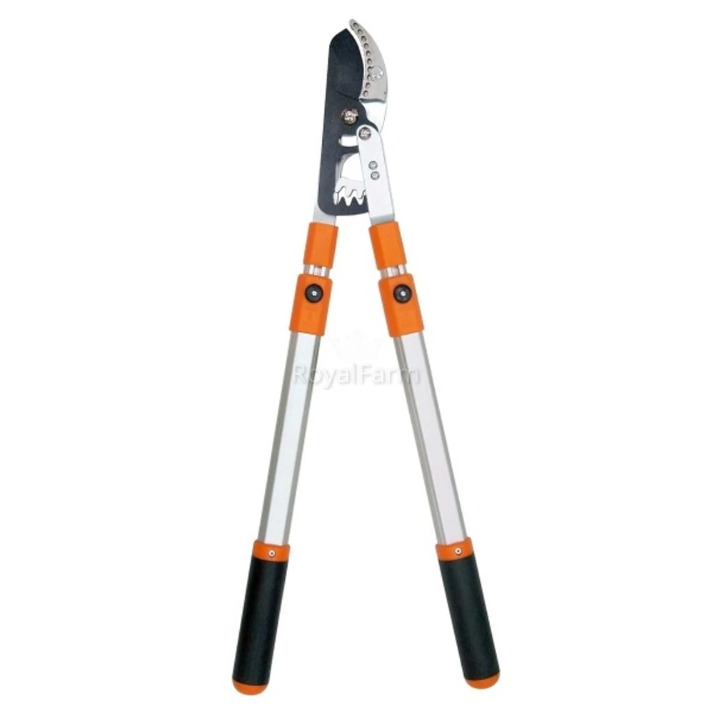 A rávágós teleszkópos kerti ágvágó ollót ágak és bokrok metszésére ajánljuk. A teleszkópos nyél alumíniumöntvényből készült, 70 és 104 cm tartományban állítható. Csúszásmentes felületű markolat. A racsninak köszönhetően a vastagabb ágak vágása kisebb erőkifejtést igényel.