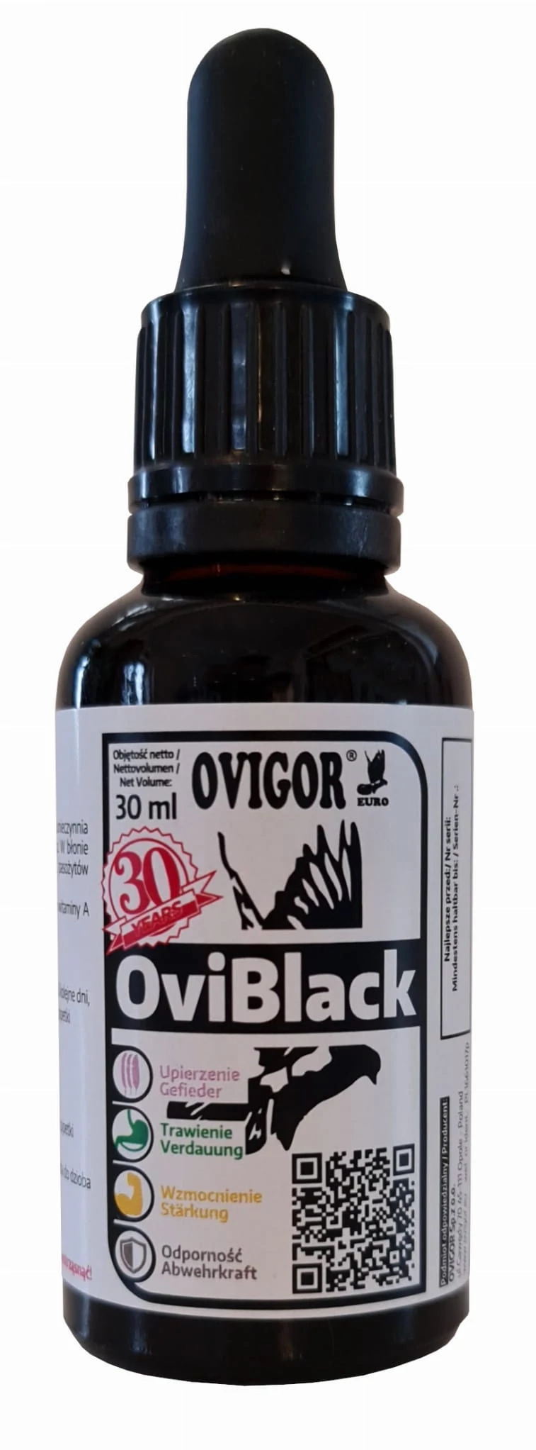 Tulajdonságok: Az OviBlack segít a kórokozók, mikroorganizmusok szaporodásának megakadályozásában, beleértve az antibiotikumokkal szemben rezisztenseket is, segít inaktiválni a baktériumok toxinjait, valamint az anyagcsere és az emésztő-bél traktus egyéb káros termékeit. A galamb csőrének, a nyelőcsőnek és a begynek a nyálkahártyájában segít olyan környezetet teremteni, amely mentes lehet a "sárga gombtól"(,trichomonas) parazitáktól (coccidia), baktériumoktól (szalmonella) és vírusoktól. Erősíti a galamb szervezetét és tisztítja a vért.